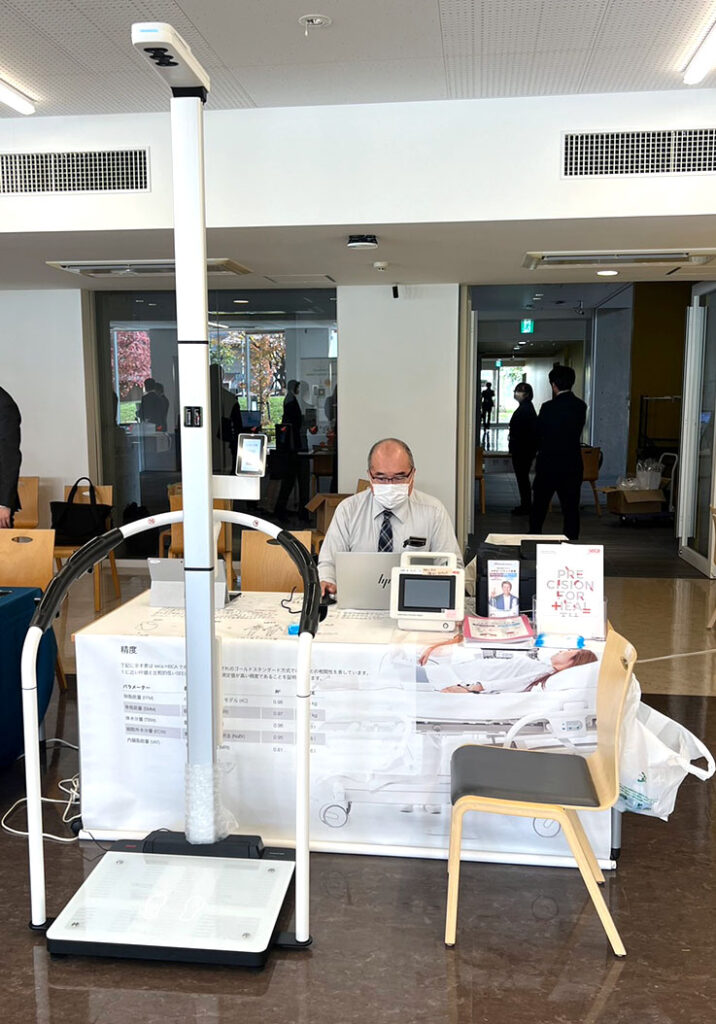 弊社代理店のドイツの医療機器メーカーseca社の体組成計の最新バージョンの機器を展示、測定会を行いました。